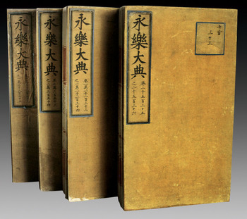 《永乐大典》是中国历史上规模最大的一部按韵编排的类书,全书共11,095册,汇集明初以前近万种珍贵典籍,与郑和下西洋、营造北京城并称为“永乐盛世”的象征。